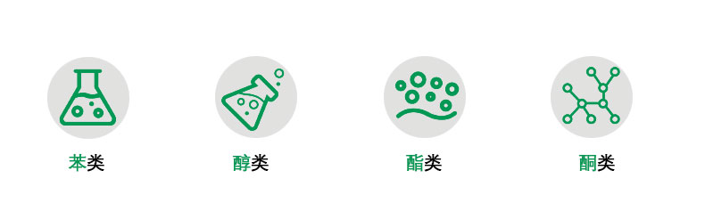 甲苯、二甲苯、甲醛、乙酸丁醋、醇类及酮类为主。